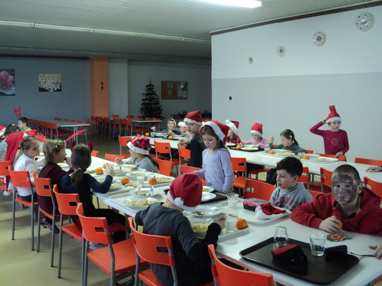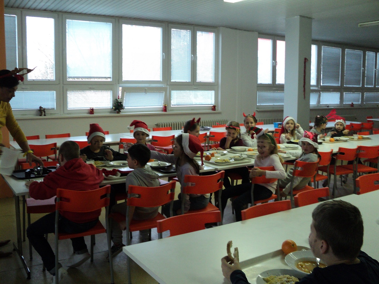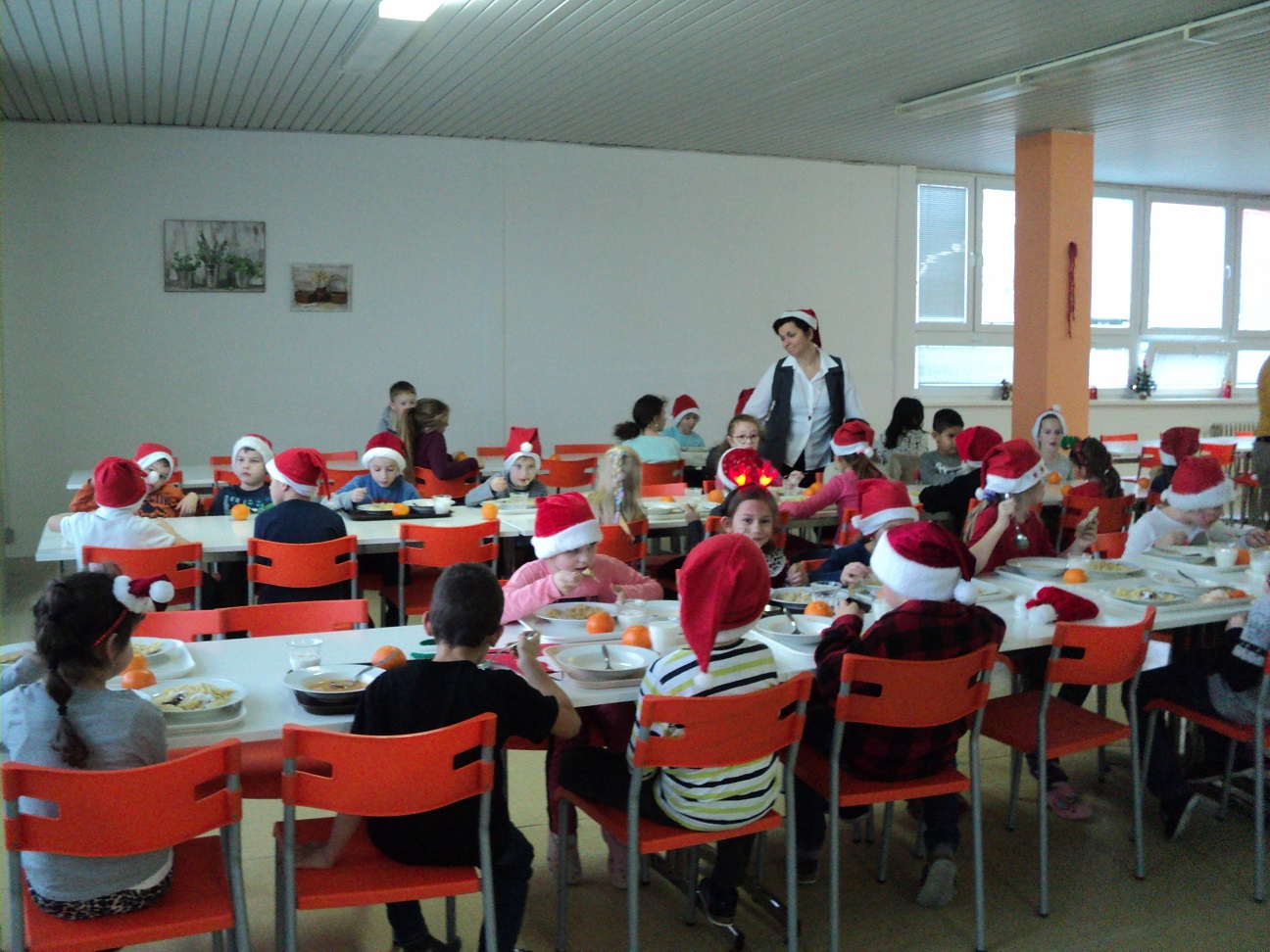 Tak, ako po iné roky aj tento rok k nám zavítal dlho očakávaný Mikuláš. Už od rána na škole vládla veselá nálada. Dnes na stravu neprišli malí stravníci, ale deti v mikulášskych čapiciach, sobíkovia, čertíci a bolo aj pár anjelov. Tváričky pomaľované od starších žiakov, očká rozžiarené. Tety kuchárky pripravili balíčky s prekvapením. A keďže sme boli dobré, deti odmenili aj nás. Poďakovali sa nám peknou pesničkou, koledou. vedúca jedálne