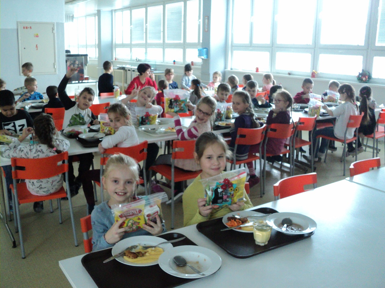 Naše staré stoličky a stoly v jedálni po 23 rokoch používania si pýtali zmenu a táto výmena starých za nové sa uskutočnila v januári pri nástupe do školy, Milo sme prekvapili našich stravníkov, keď v prvý deň obeda ich vítala vynovená jedáleň vo veselých farbách. Stoličky sú plastové pomarančové a stoly biele kovové. Verím, že stravníci si budú vážiť príjemné prostredie jedálne. Nákup sme financovali z réžie, ktorú vyberáme od rodičov a taktiež finančnou čiastkou prispelo ZRPš na našej škole. Za našich-vašich stravníkov srdečne ďakujem.vedúca jedálne