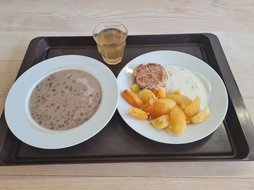 2.stupeňPolievka: Šošovicová mliečna 220 gObed: Karbonátok z rybieho filé pečený 100 gPríloha: Zemiaky opekané 200 g Tatárska omáčka z jogurtu 65 gVoda s citrónovou šťavou 200 g