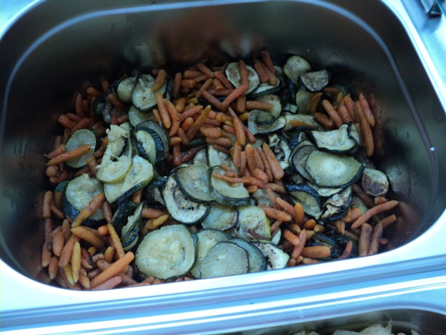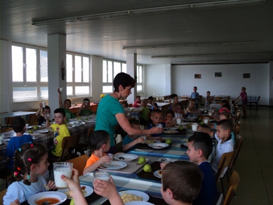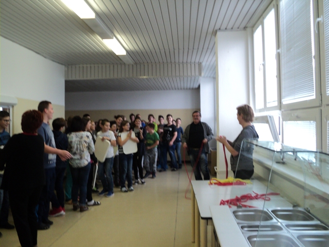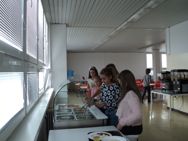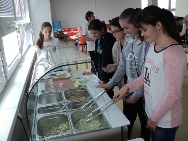 Ovocie: kiwiNápoj: z čerstvých citrónovŠaláty: Šalát ľadový s paradajkami a bazalkou, šalát mrkvový so zelerom a citrónom, šalát zo surovej zeleniny s jogurtom a syrom, grilovaná cuketa s baby mrkvičkou. Dnes jedáleň vítala stravníkov s pultom plným šalátov. Deti z prvého stupňa som obsluhovala ja, deti z druhého stupňa a dospelí stravníci samoobslužne si vyberali šaláty.Aj deti, ktoré bežne odmietajú šaláty dnes neodolali a chutnali a predbiehali sa v hodnotení šalátov. Z ich hodnotenia chutili všetky, ale prekvapilo nás, že najväčší úspech mal šalát s jogurtom a syrom, ktorý bežne nezaraďujeme do jedálneho lístka. Určite v tomto urobím nápravu. Vzdelávacia aktivita:Časť detí z družiny sa poobede zúčastnila prednášky s pracovníčkami RÚVZ. Za pomoci bábky "Adamko" preberali význam ovocia a zeleniny v strave a pre ich zdravý vývoj. Deti najviac bavila súťaž, kde so zaviazanými očami len hmatom zisťovali akú zeleninu alebo ovocie držia v rukách. V rámci besedy všetečným otázkam na pani prednášateľky nebolo konca kraja. Máme veľmi šikovné deti, ktoré ovládajú zdravú výživu a vedia sa na túto tému rozprávať. Úsmev dňa:Na otázku aké nápoje by deti nemali piťOdpoveď nášho malého stravníka: pivo:-)))vedúca jedálne