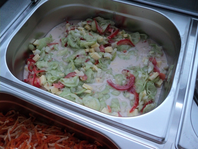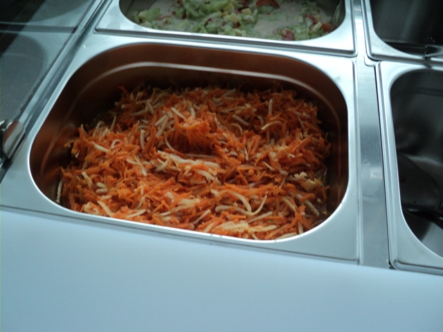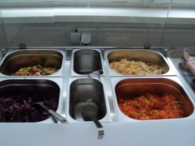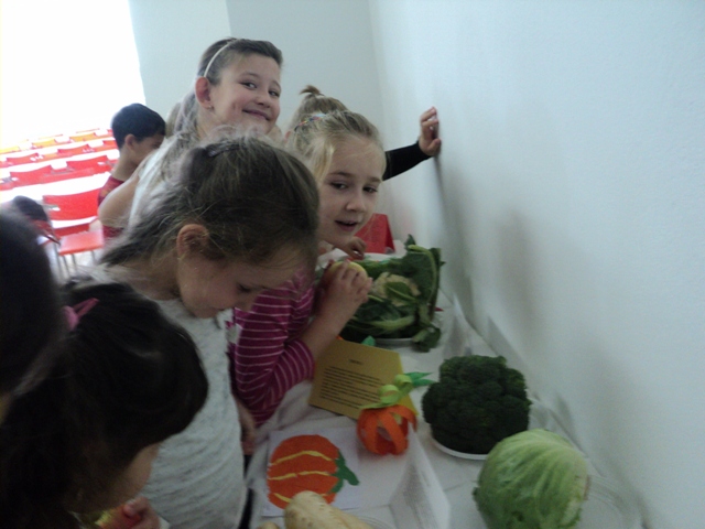 Dnešný deň sme sa zamerali na oboznámenie malých i veľkých stravníkov s projektom. Vystavili sme šalátový pult. Jedáleň sme patrične vyzdobili k téme projektu. Steny jedálne zdobili práce detí s témou zelenina. Výstavku čerstvej zeleniny s popisom krásne doplnili práce detí vytvorené v školskom klube. Úsmev dňa: prvákov zaujímalo kedy bude v šalátovom pulte zmrzlina:-))))A naša jedáleň dnes žila a voňala zeleninou.