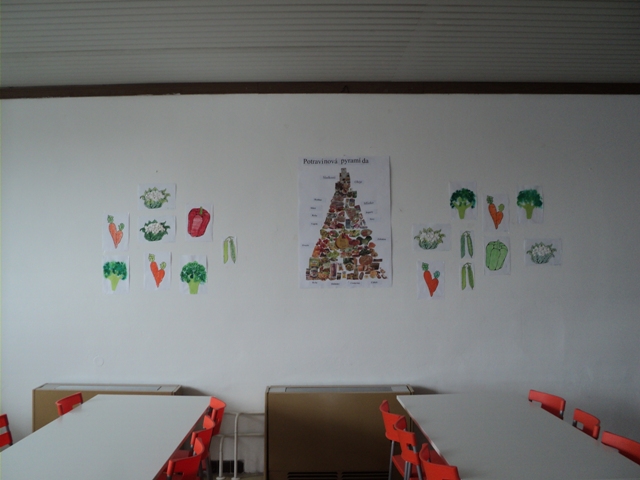 Dňa 15.10.2015 som mala besedu s družinármi 3.-4.ročníka ku Dňu výživy. Beseda bola zameraná na zdravú výživu :"POZNÁTE VÝŽIVOVÚ PYRAMÍDU?"„Počuli ste už o výživovej pyramíde? Čo podľa vás predstavuje?“„Na každom poschodí pyramídy býva iná rodina zdravých potravín. 1.Na prvom poschodí býva rodina, do ktorej patrí pečivo, chlieb, ryža, cestoviny. Tieto potraviny sú vyrábané z obilnín ako sú napríklad pšenica, raž, jačmeň, ovos. 2.Druhé poschodie- na ktorom bývajú dve rodinky – ovocná a zeleninová. 3. Na treťom poschodí býva rodina bielkovín so svojimi mliečnymi výrobkami v jednej izbe a v druhej mäso spolu s rybacím mäsom. 4.Na najvrchnejšom poschodí býva maslo a olej.Besedu sme ukončili prehliadkou miesta, kde deťom pripravujeme zdravú výživu - kuchyne a kuchynských priestorov. Verím, že beseda sa páčila a deti si zapamätajú jednoduchý spôsob , pre ich vek prijateľný...čo je to výživová pyramída.ved.ŠJ