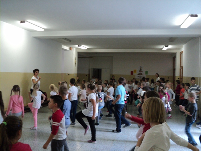 Ovocie: pomarančNápoj: z čerstvej limetky s mätouŠaláty: šalát jablkový s pomarančom, šalát mrkvový s medom a kukuricou, šalát z čerstvej zeleniny s rukolou, šalát z červenej kapusty s uhorkami. Aj dnes pani kuchárky strúhali, rezali, krájali a pripravovali nové šaláty pre našich stravníkov. Stravníci pri šalátovom pulte už boli zručnejší, vedeli si nakombinovať šaláty do misky a vracali sa s prázdnymi pre nové šaláty. Lebo ochutnať treba všetko. Ovocný šalát z jablka a pomaranču oslovil malých i veľkých. Toto všetko nás utvrdilo v tom, že šalátový pult si našiel miesto v našej jedálni. Pohybová aktivita a vzdelávacia aktivita:poobednajších hodinách sme pokračovali v pohybových aktivitách. Švihadlovalo sa a zumbovalo na celej škole. Pridali sa i dospelí stravníci a pán riaditeľ bol vzorom. Malí i veľkí z pohybu mali radosť. Vzdelávali sa ďalšie skupiny detí zo školského klubu. Pracovníčky RÚVZ hravou formou cez bábku "Adamko" deti vtiahli do sveta zdravej výživy. Z prednášky odchádzali nadšené a plné nových dojmov.vedúca jedálne